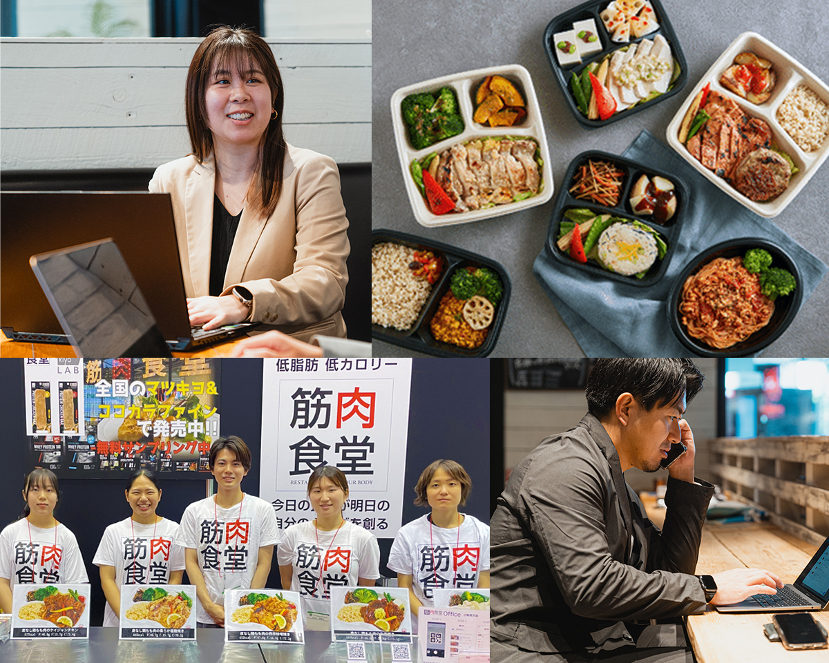 プロの料理⼈が⼀つ⼀つこだわって調理したお弁当を冷凍してご⾃宅に配送する『筋肉食堂DELI』を運営しています。⾼たんぱく‧低脂質‧低カロリーかつ⾷べごたえ抜群のお弁当が、レンジアップするだけでいつでもお⼿軽に⾷べられます。レストランクオリティーにこだわるため、想いを形にしやすい自社製造という方法を取っています。