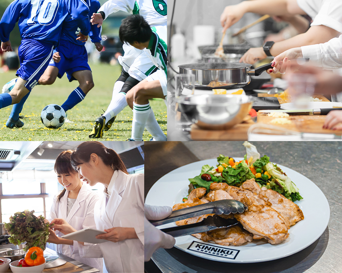 FC東京(J1リーグ∕サッカー)、サンロッカーズ渋⾕(B.LEAGUE∕バスケットボール)、埼⽟パナソニックワイルドナイツ(ラグビーリーグワン)などのプロチームに向けた食事の提供だけでなく、クラブチームや大学の選手寮の食堂運営など、アスリートのパフォーマンスを『食』で支えています。